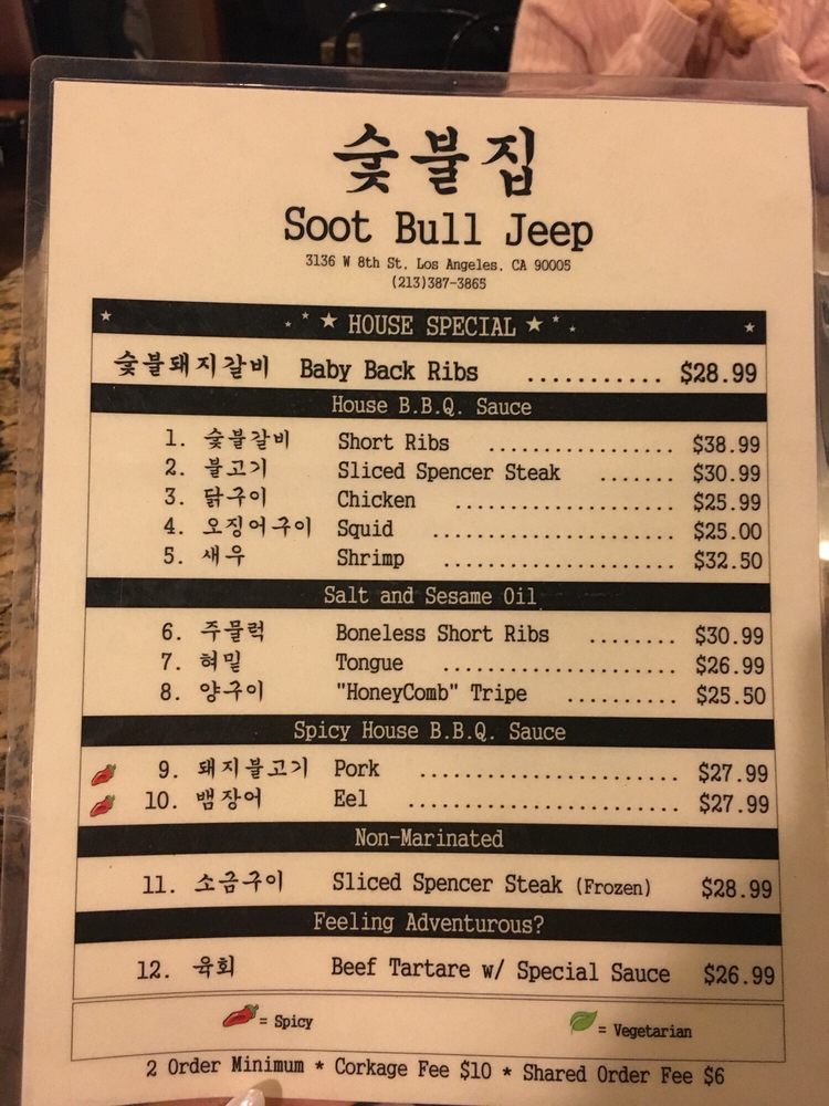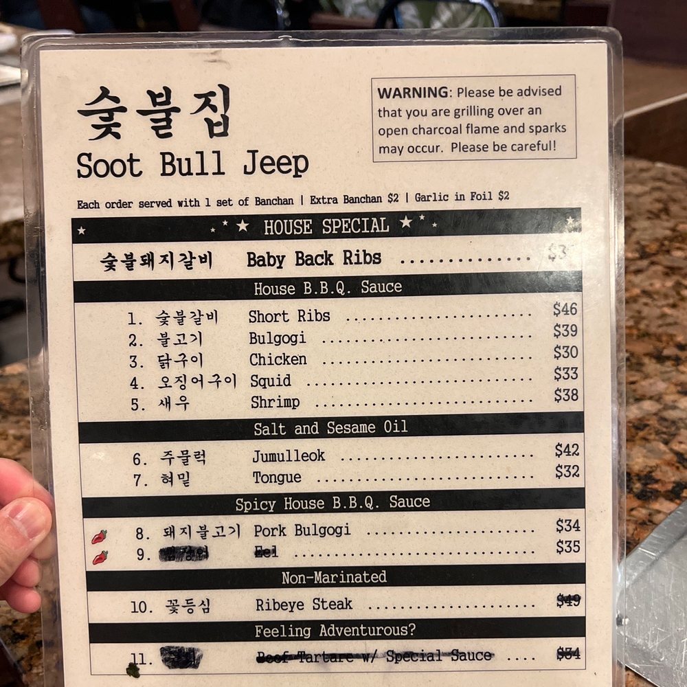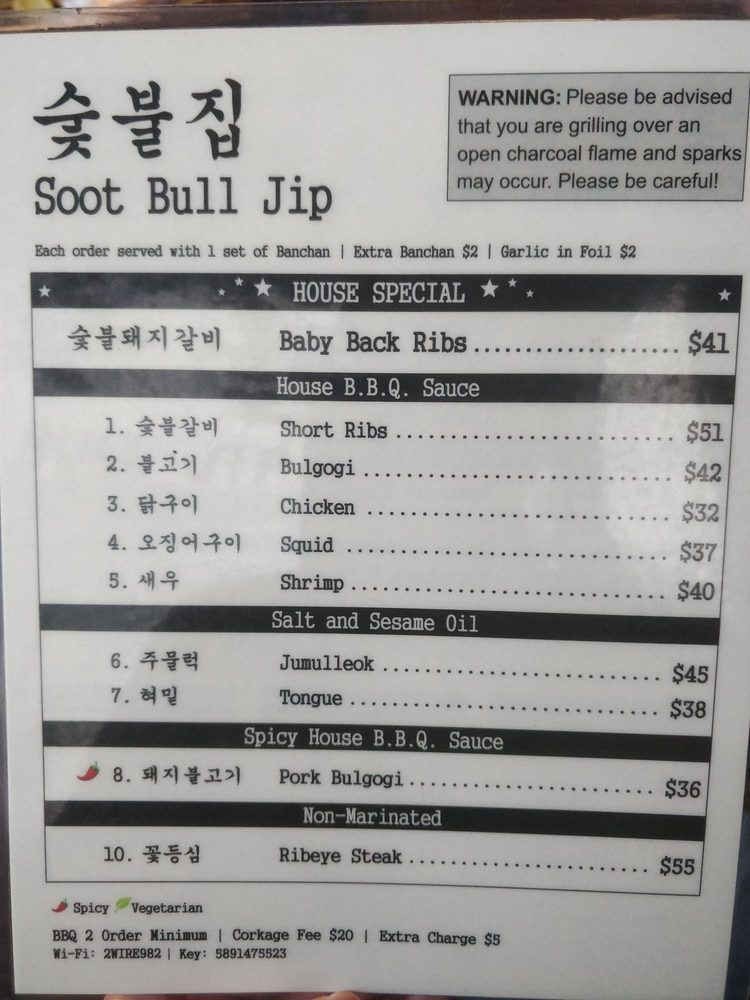 Soot Bull Jip Menu